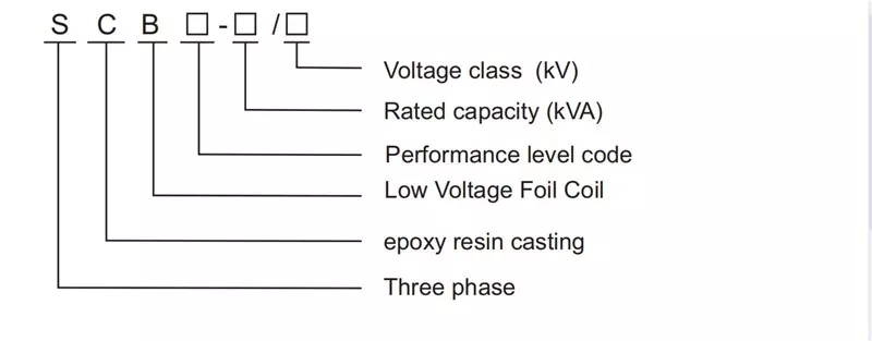 Berikut adalah struktur umum transformer jenis kering SCB: